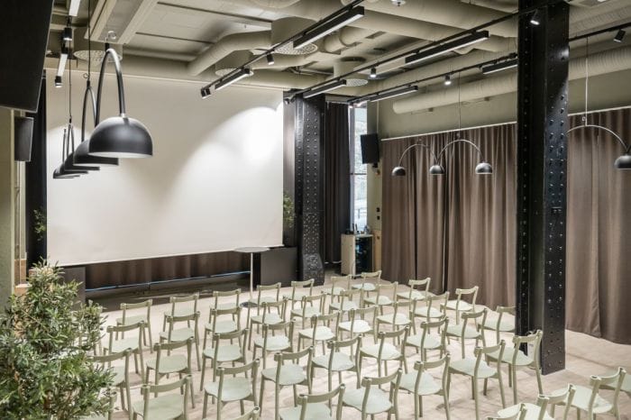 I den stora aulan finns möjlighet att boka slående produktlanseringar och imponerande presentationer med skarp bioduk, stor scen och profesionell ljudteknik.
